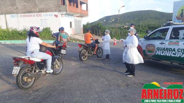 A Secretaria de Saúde do Município de Arneiroz, em conjunto com a Guarda Municipal realizou trabalho educativo de orientação para a prevenção ao COVID-19, na Sede e Distritos. Esse trabalho foi realizando: destruição de máscaras, higienização de locais públicos de grande circulação, de veículos que adentrassem ao município, orientações por meio de carro de som volante e abordagens pessoais na ruas e avenidas. Com isso, está sendo levado a toda a população, as orientações e medidas possíveis para se prevenir desse vírus.